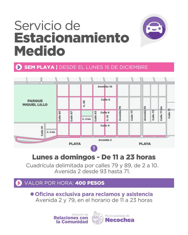 Según detallaron desde la Dirección de Relaciones con la Comunidad, el área alcanzada por el estacionamiento medido comprenderá las avenidas 2 y 10, entre las calles 79 y 89, y la avenida 2 desde calle 93 hasta calle 71. La tarifa establecida será de 400 pesos por hora.