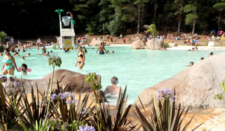 Entre sus principales propuestas se destacan las piletas de arena, concebidas como playas artificiales, que cuentan con cascadas y un puente que las une, generando un entorno pensado para el descanso y el entretenimiento en contacto con el entorno natural.
