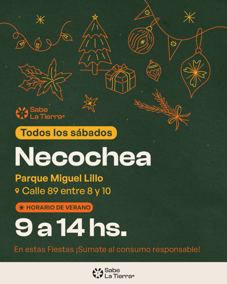 En Necochea, Sabe la Tierra continuará funcionando en su formato habitual de mercado de día, todos los sábados de 9 a 14 horas, bajo los árboles del Parque Miguel Lillo, en la intersección de calle 89 y avenida 10. Desde temprano, quienes se acerquen podrán acceder a verdura fresca y agroecológica, recién cosechada en campos de la zona, además de una amplia variedad de productos elaborados por productores locales.