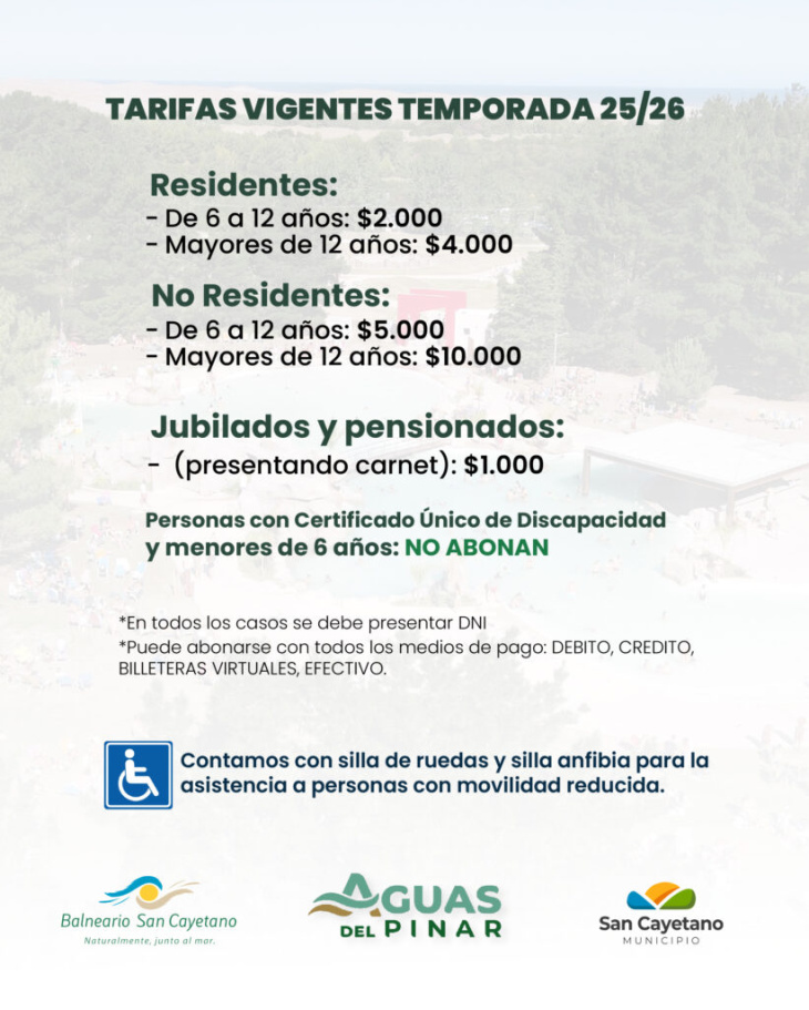 Desde el Municipio recordaron que el complejo cuenta con silla de ruedas y silla anfibia para personas con movilidad reducida, además de amplios espacios verdes, sombra natural y sectores de descanso.