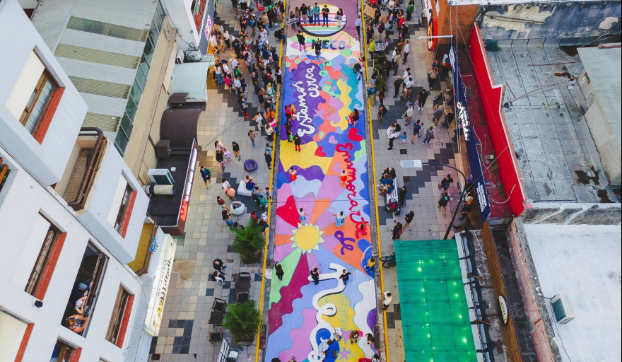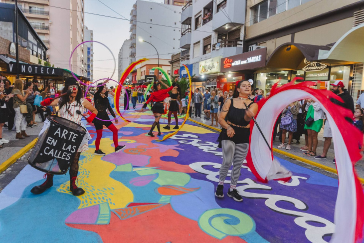 La propuesta consistió en una intervención visual sobre la traza peatonal, acompañada por espectáculos artísticos y un acto sencillo, con la participación de artistas locales y referentes de distintas áreas municipales.