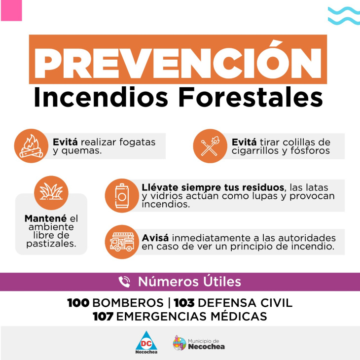También advirtió sobre una causa frecuente de incendios: estacionar vehículos sobre pasto seco. “El caño de escape alcanza temperaturas muy altas. Al tomar contacto con el pastizal seco se inicia el fuego, se prende el auto y todo lo que está alrededor”, explicó.