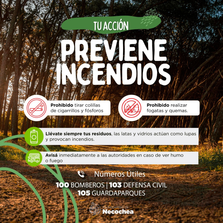 Desde Guardaparques se recuerda que está prohibido encender fuego en cualquier espacio público natural no habilitado, tanto en el Parque Miguel Lillo como en la ribera del Río Quequén. Los únicos lugares autorizados son los fogones y parrillas habilitados, como los ubicados en avenida Pinolandia (entre calles 2 y 10), los complejos sindicales y el Camping Miguel Lillo, en avenida 2 y Las Torcazas.