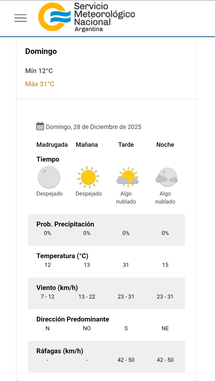 🌡️ Temperaturas: mínima de 12°C y máxima de 31°C