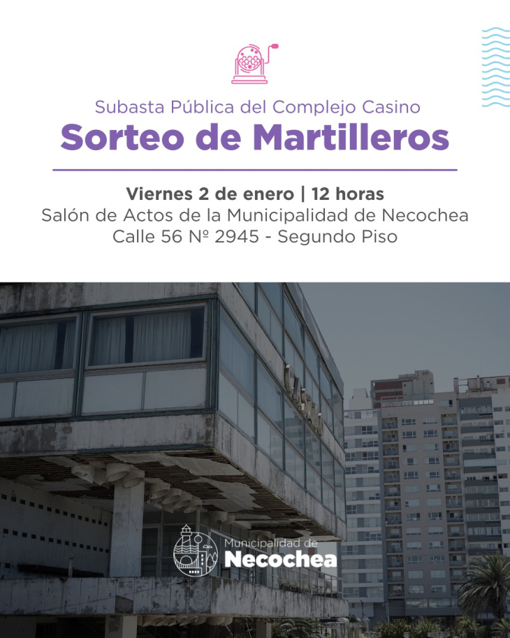 La medida fue oficializada a través del Decreto N° 3773/25, en cumplimiento de la Ordenanza N° 12.009/25, aprobada por el Honorable Concejo Deliberante de Necochea, que habilita la venta del edificio mediante subasta pública. El sorteo constituye un paso administrativo indispensable dentro del proceso definido para avanzar con la eventual enajenación del inmueble.