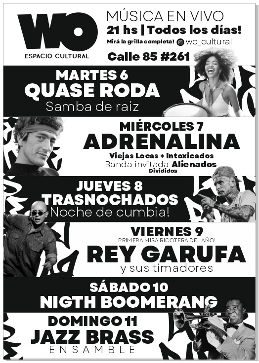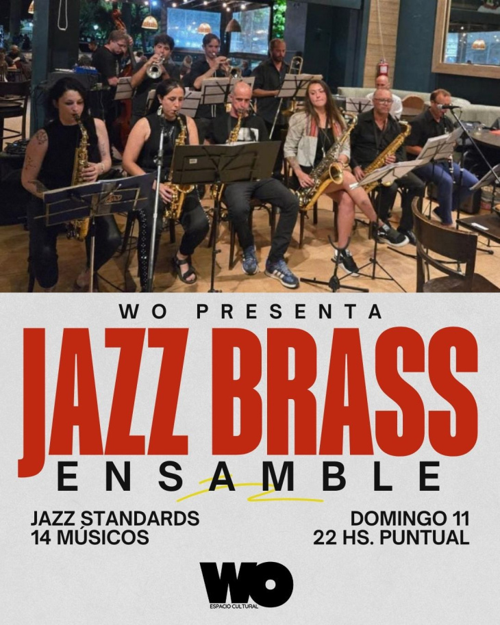 La agenda continuará el domingo 11 con una noche dedicada al jazz en vivo, cuando Jazz Brass se presente en El Templo de WO Espacio Cultural. La histórica orquesta local subirá al escenario con una formación de 14 músicos y un repertorio que recorre las raíces del género. Las puertas abrirán a las 21 y el show comenzará a las 22. Las entradas se encuentran disponibles de manera anticipada a través de articket.com.ar y en ADN Store, calle 61 N° 2819.