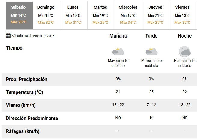 La jornada se presentará estable y sin precipitaciones, con cielo mayormente nublado durante gran parte del día.