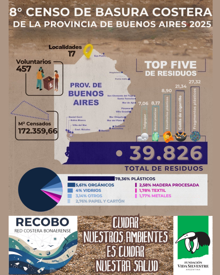 El relevamiento se llevó a cabo durante los meses de septiembre y octubre de 2025 y fue organizado por la Red Costera Bonaerense (RECOBO), una articulación de organizaciones de la sociedad civil y organismos públicos. En total participaron 457 voluntarios y 50 instituciones, que trabajaron en 17 localidades costeras, entre ellas Necochea y Quequén.