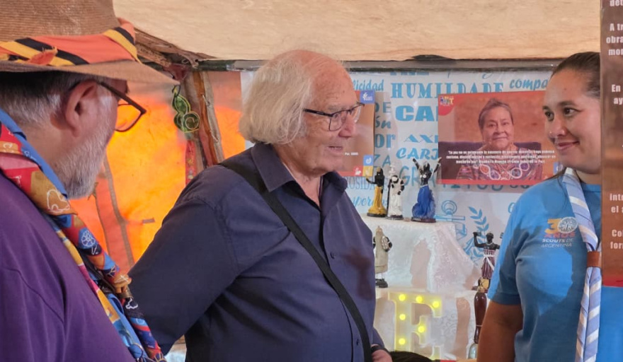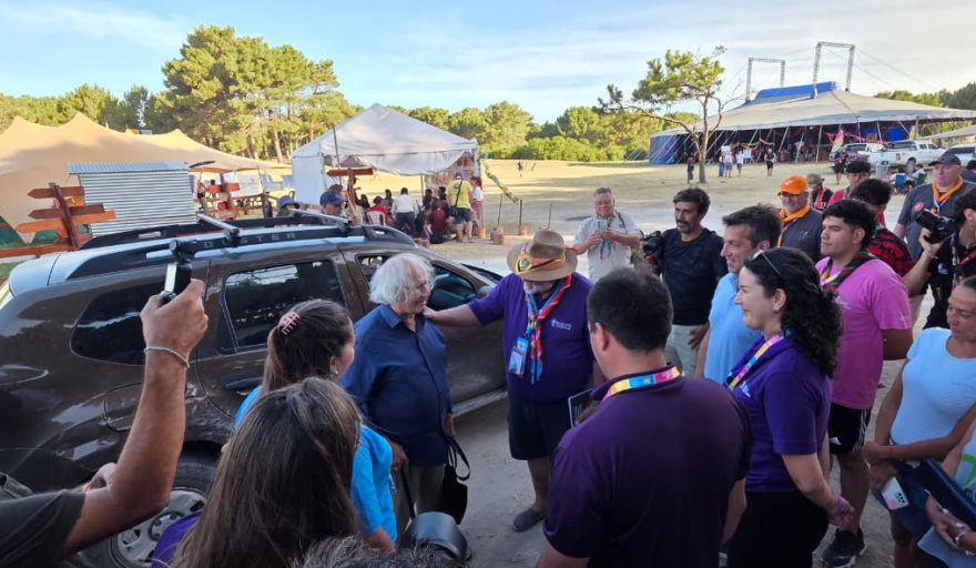 En la tarde de este viernes, el docente, artista, activista por los derechos humanos y Premio Nobel de la Paz participó de un encuentro con miles de jóvenes scouts de entre 18 y 22 años que forman parte del campamento nacional que se desarrolla en el campo scout del Parque Miguel Lillo. NdeN presenció el encuentro, que se desarrolló en un clima de escucha atenta, respeto y fuerte carga simbólica.