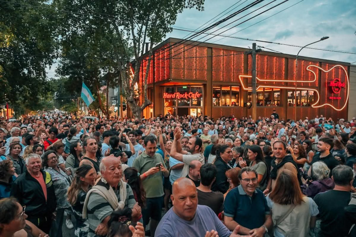 La concentración principal se produjo pasadas las 20.30 en la intersección de las calles Güemes y Avellaneda, a metros del nuevo Hard Rock Café de la ciudad, donde la multitud se dividió entre partidarios y detractores del Presidente. Milei arribó al lugar cerca de una hora más tarde, en medio de un fuerte operativo de seguridad.