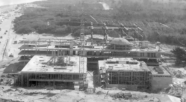 El proyecto había comenzado años antes. El 12 de octubre de 1968 se colocó la piedra basal de una obra considerada de avanzada para la época y sin paralelo en América Latina. Diseñado por el arquitecto Roberto Quiroz, el complejo se desarrolló sobre un predio de 22 mil metros cuadrados frente al mar, con una intervención inédita sobre el paisaje costero: fue necesario remover un médano de 12 metros de altura y trasladar 90.000 metros cúbicos de arena.