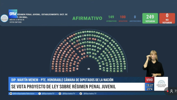 La iniciativa obtuvo 149 votos afirmativos frente a 100 negativos. El texto enviado originalmente por el Poder Ejecutivo proponía fijar la edad en 13 años y una pena máxima de 20 años, pero durante el tratamiento legislativo fue modificado y quedó establecido el límite en 14 años y una pena máxima de 15 años.