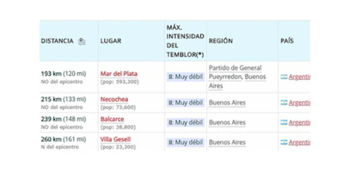 De acuerdo con lo publicado por Infobae, el fenómeno también fue percibido en otras ciudades de la Costa Atlántica, entre ellas Necochea. El medio nacional consignó que algunos vecinos señalaron haber advertido vibraciones en viviendas y edificios, principalmente en reposo o en espacios cerrados.