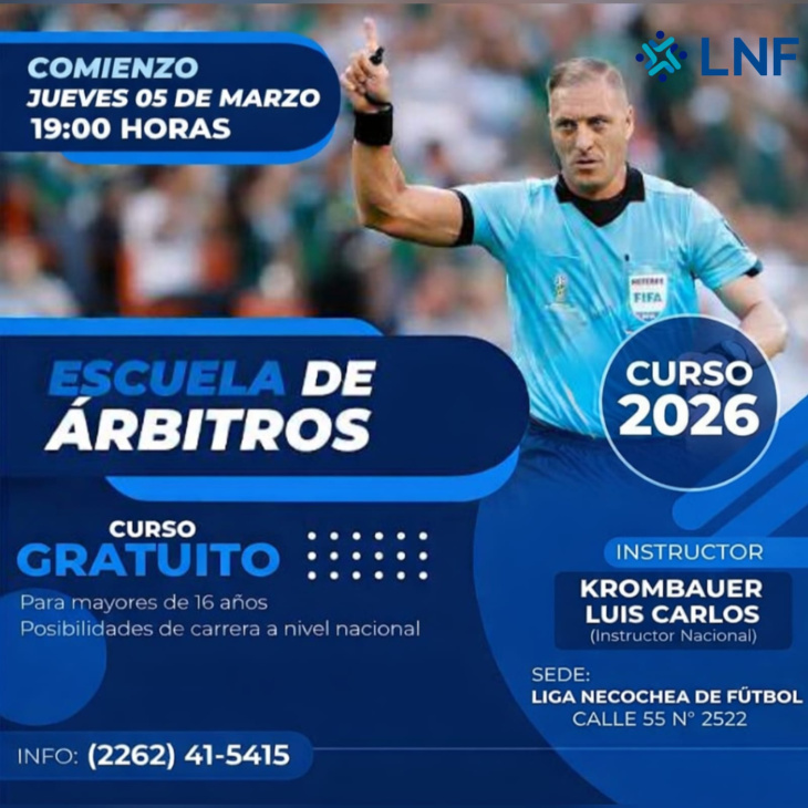 La capacitación estará a cargo del Instructor Nacional Luis Carlos Krombauer, quien brindará herramientas teóricas y prácticas para la formación integral de nuevos árbitros.