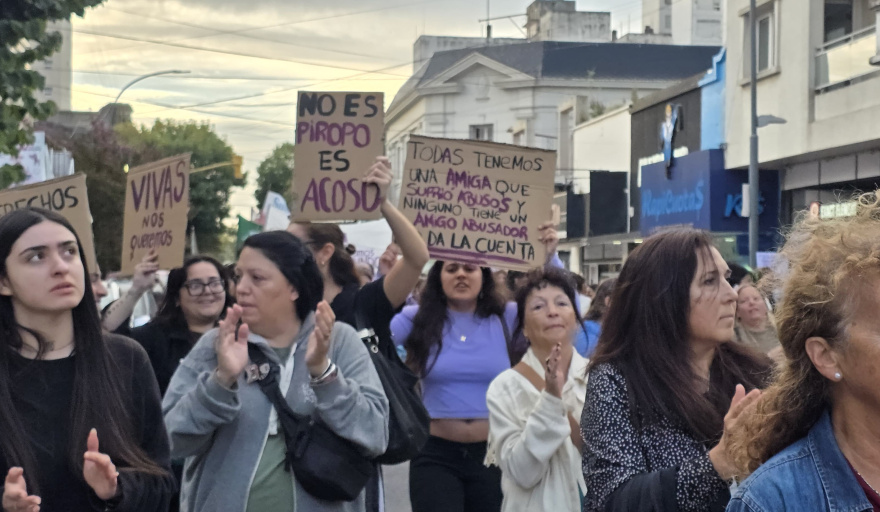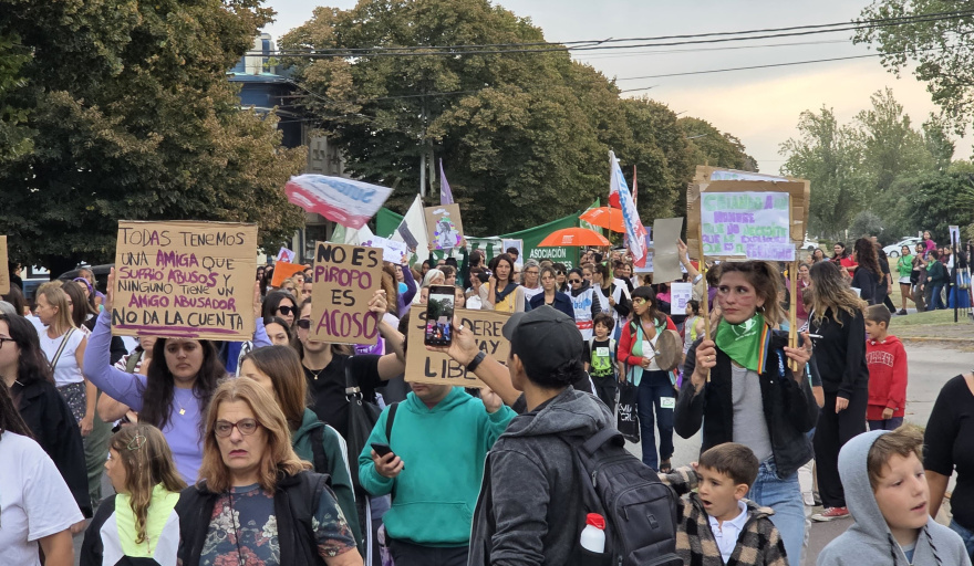 Con consignas, pancartas y banderas, la marcha recorrió el centro de Necochea y volvió a poner en agenda las demandas del movimiento feminista y transfeminista.