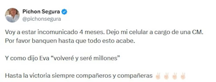 Luego de conocerse la prisión preventiva, Segura se expresó en sus redes sociales: