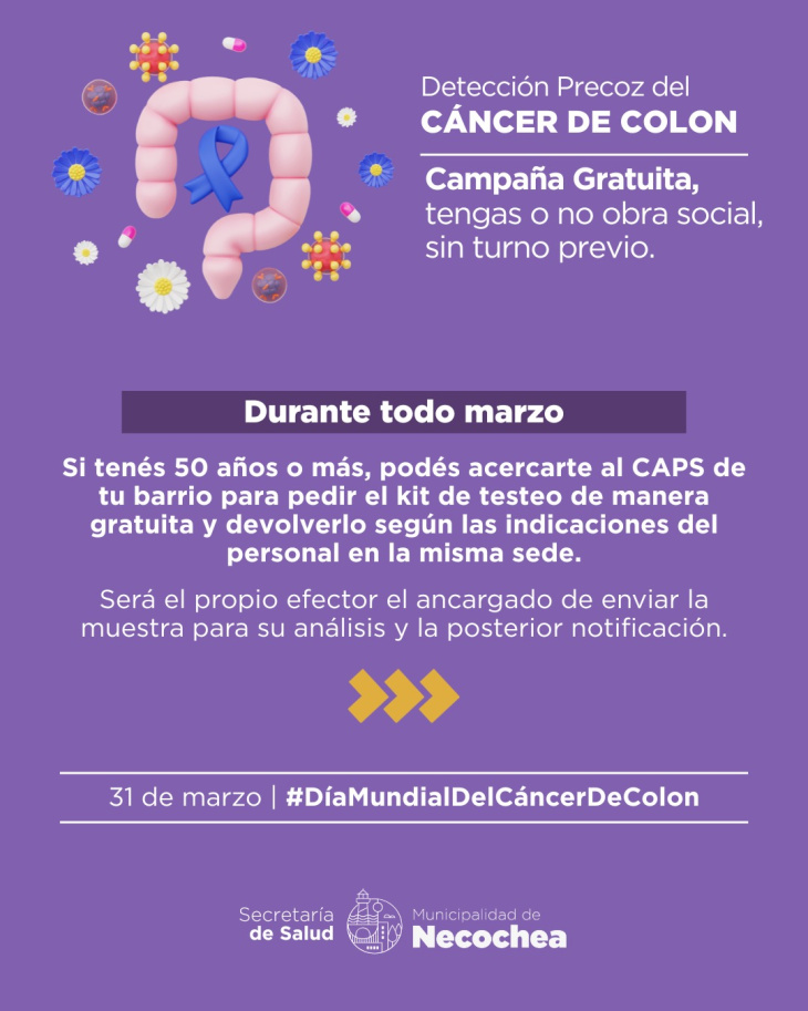 La iniciativa, que se lleva adelante desde hace tres años, se enmarca en el Día Mundial del Cáncer de Colon y tiene como objetivo promover el diagnóstico temprano de una enfermedad que, detectada a tiempo, presenta altas tasas de curación.
