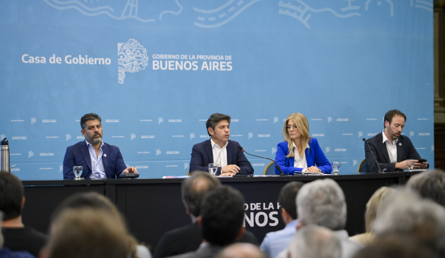 El encuentro se desarrolló junto a la vicegobernadora Verónica Magario y los ministros de Economía, Pablo López, y de Gobierno, Carlos Bianco, además de jefes comunales de distintos distritos de la provincia.