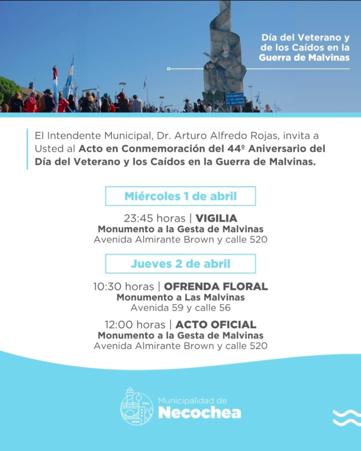 La actividad forma parte del cronograma oficial dispuesto por el municipio y propone un espacio de encuentro, respeto y memoria a 44 años del inicio del conflicto bélico de 1982.