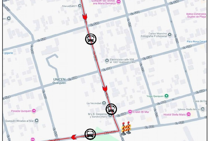 Según se detalló, el desvío previsto será por calle 521 hasta Avenida 502 (Juan de Garay), luego por Avenida 502 hasta Avenida Almirante Brown, para posteriormente retomar el recorrido habitual.