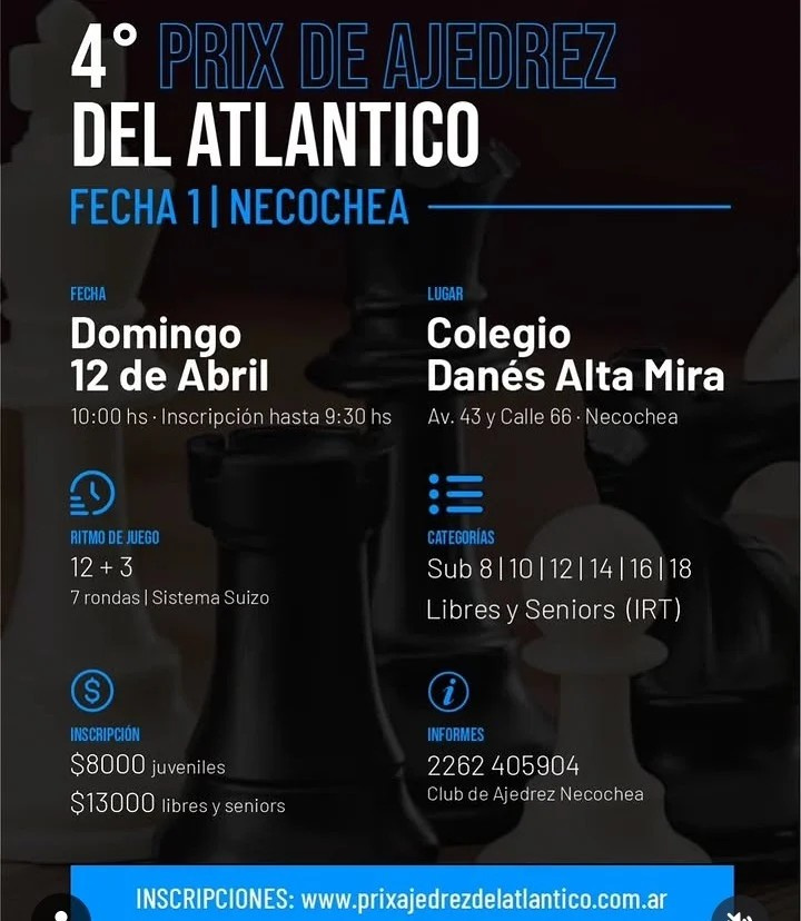 El Prix del Atlántico se desarrolla a lo largo del año en distintas sedes de la región, consolidándose como uno de los torneos más importantes del calendario ajedrecístico regional. Podés inscribirte y obtener más información en la página oficial del torneo.