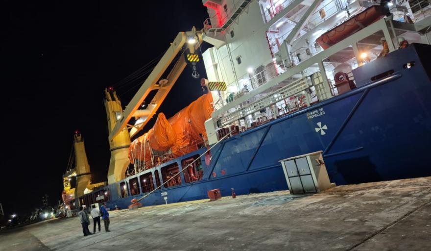 Posteriormente, está prevista la llegada de un segundo buque de mayor tamaño, que cargará nuevamente las piezas para continuar con la operatoria logística.