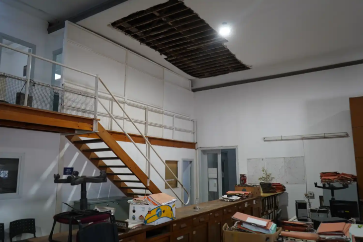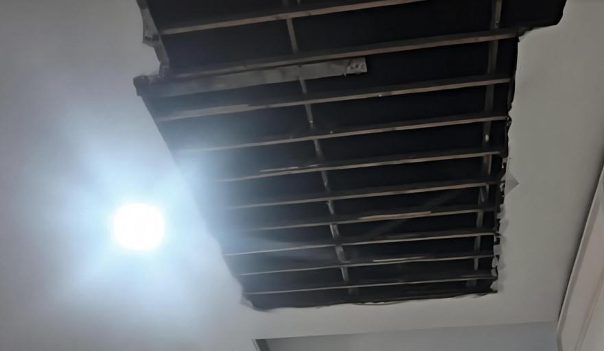 De acuerdo a lo señalado por el gremio, el desprendimiento se produjo como consecuencia de filtraciones de agua persistentes, que habrían afectado la estructura del techo.