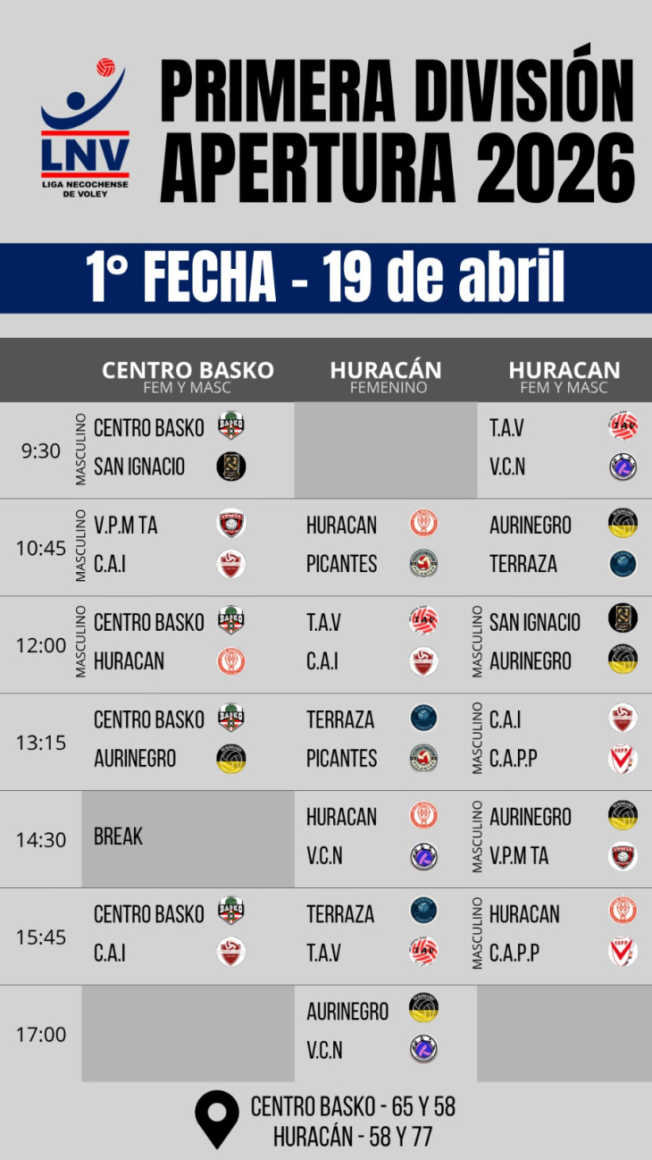 El Club Huracán será uno de los principales protagonistas del torneo, ya que llega como vigente campeón en las ramas femenina y masculina, y buscará comenzar la defensa con buenos resultados.