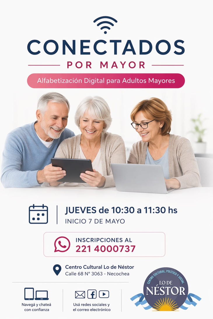 Entre las iniciativas destacadas se encuentra “Conectados por Mayor”, un taller de alfabetización digital orientado a adultos mayores, que apunta a facilitar el uso del celular, redes sociales y herramientas digitales, promoviendo la inclusión tecnológica.
