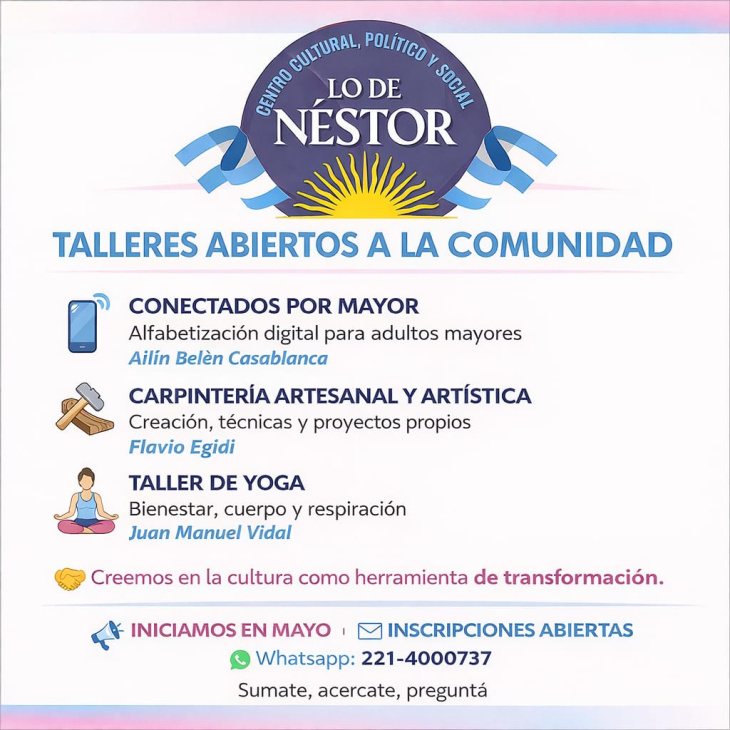 Los talleres comenzarán en mayo y las inscripciones ya se encuentran abiertas. Las personas interesadas pueden comunicarse vía WhatsApp al 221-4000737 para obtener más información.