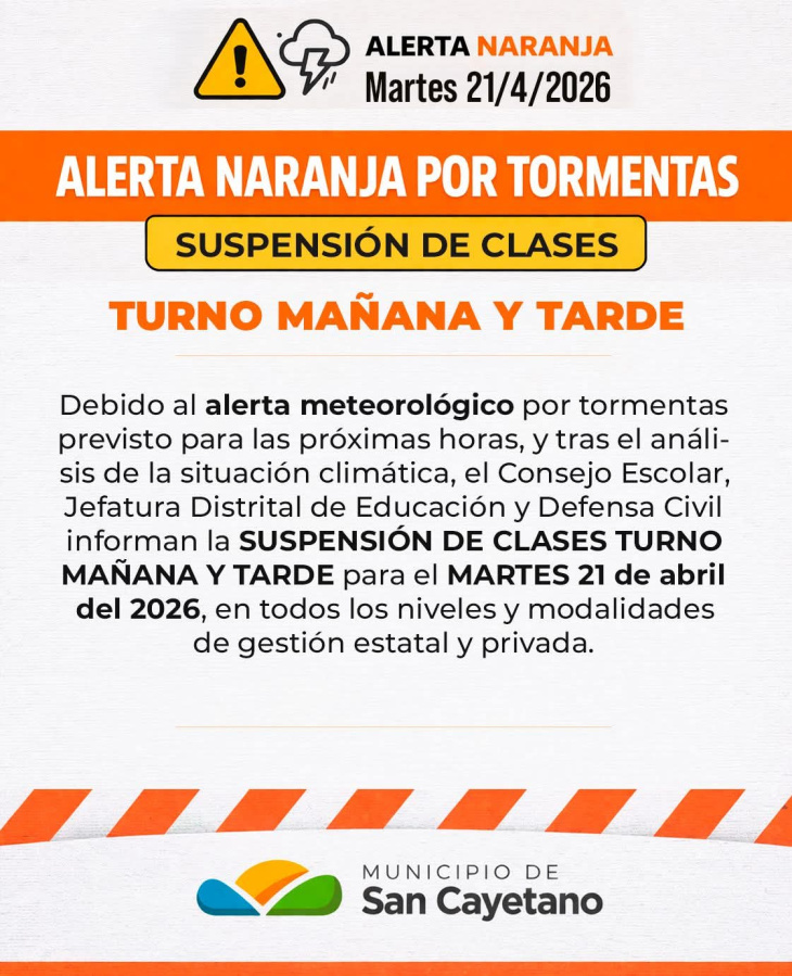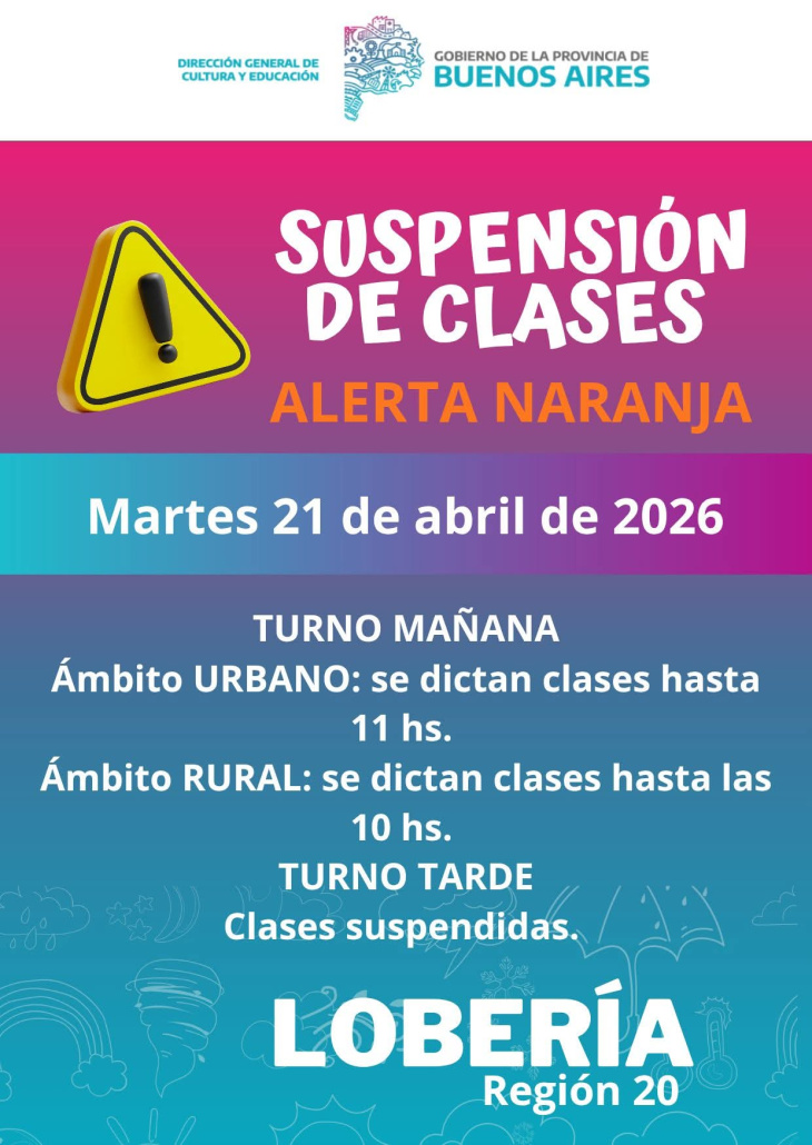 En San Cayetano, las autoridades resolvieron la suspensión total de clases en los turnos mañana y tarde, mientras que en Lobería se dispuso una modalidad parcial: