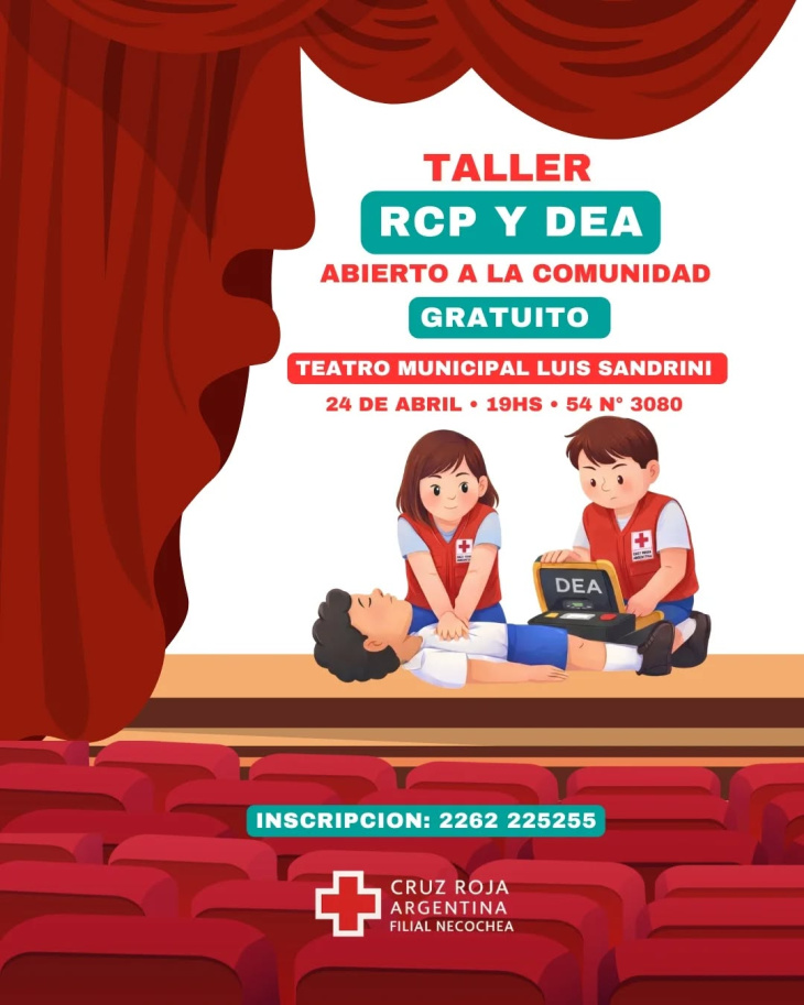 La actividad consistirá en un taller de Reanimación Cardiopulmonar (RCP) y uso de Desfibrilador Externo Automático (DEA), que comenzará a las 19 horas en la sala ubicada en calle 54 Nº 3080. Estará a cargo de integrantes de la filial local de Cruz Roja Argentina.