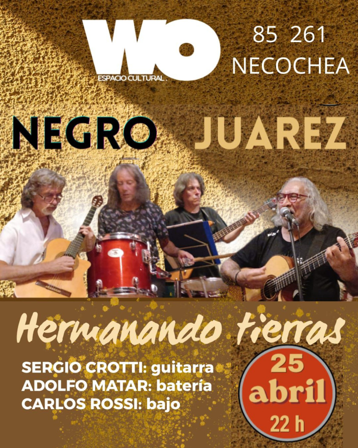 Este sábado 25 de abril, WO Espacio Cultural (calle 85 N° 261) será escenario de una noche especial con la presentación de “Hermanando Tierras”, el espectáculo del artista santiagueño “Negro” Juárez.