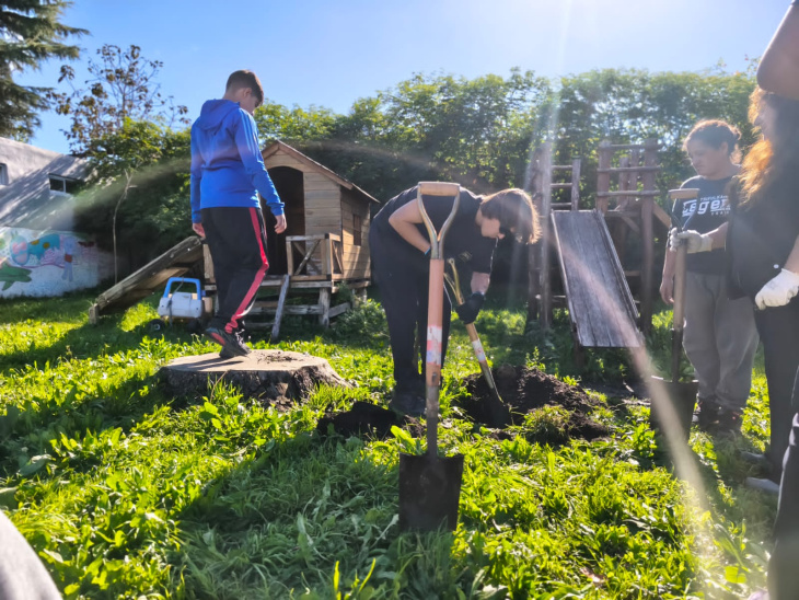 La forestación, el ordenamiento del espacio y la huerta no aparecen como acciones aisladas, sino como parte de una misma secuencia: integrar formación, ambiente e inclusión en una práctica sostenida.