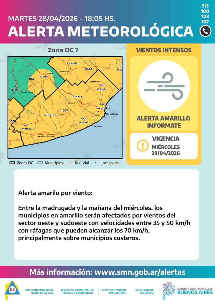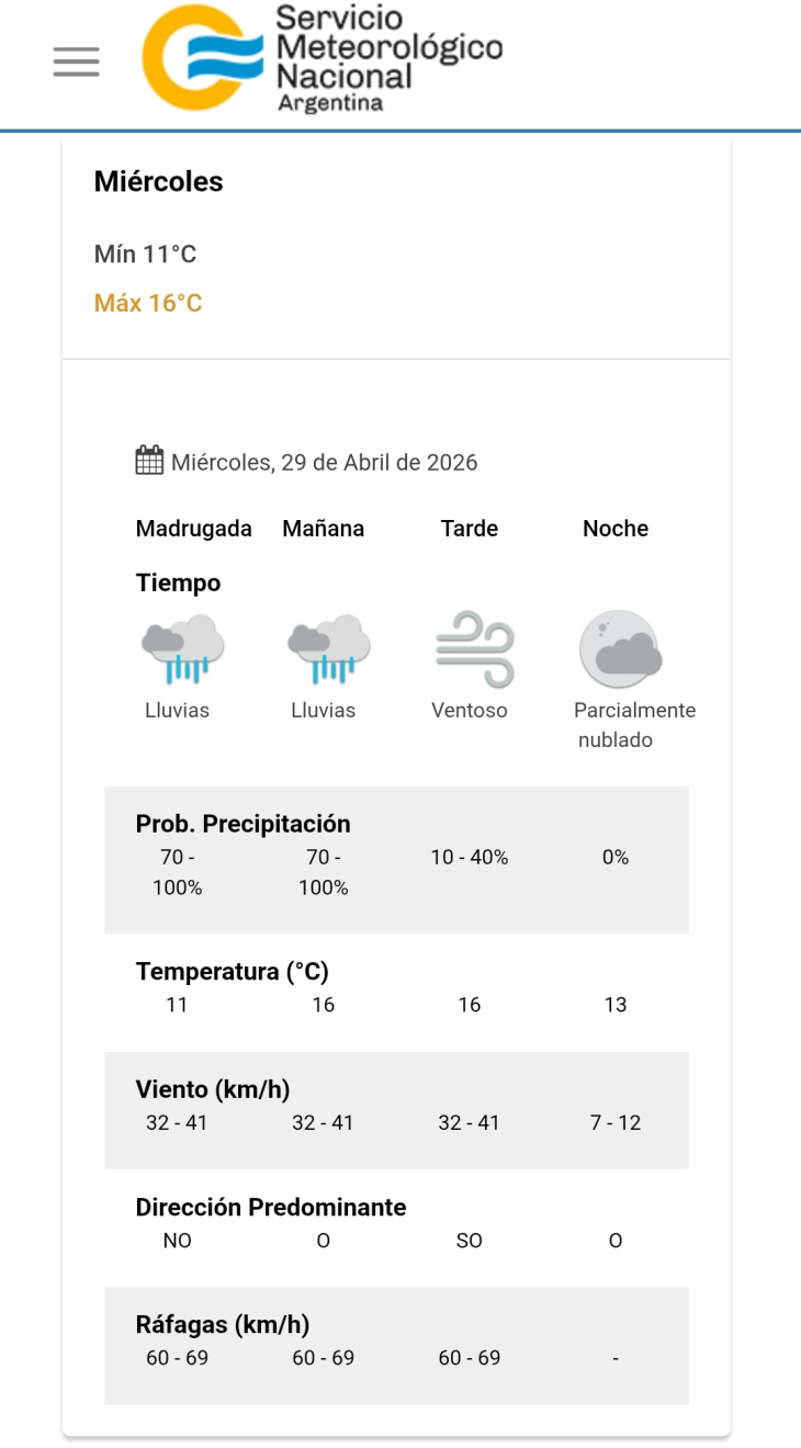 De acuerdo al pronóstico oficial, las condiciones comenzarán a estabilizarse hacia la tarde, con una disminución progresiva de la intensidad del viento y sin lluvias hacia la noche.