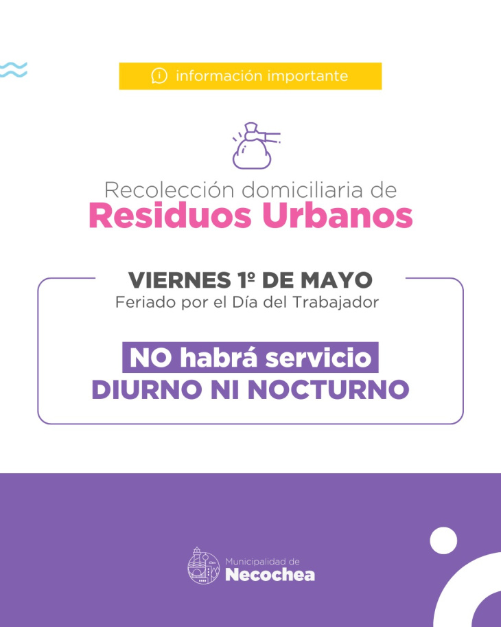 En paralelo, el servicio de recolección domiciliaria de residuos urbanos estará completamente suspendido, tanto en su turno diurno como nocturno.