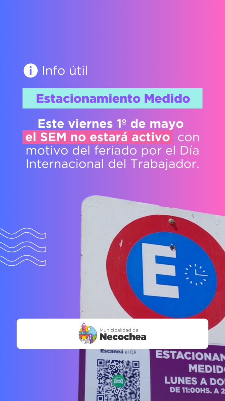 La Municipalidad informó que durante toda la jornada no estarán operativos ni el sistema de Estacionamiento Medido (SEM) en la zona céntrica ni el servicio de recolección domiciliaria de residuos.