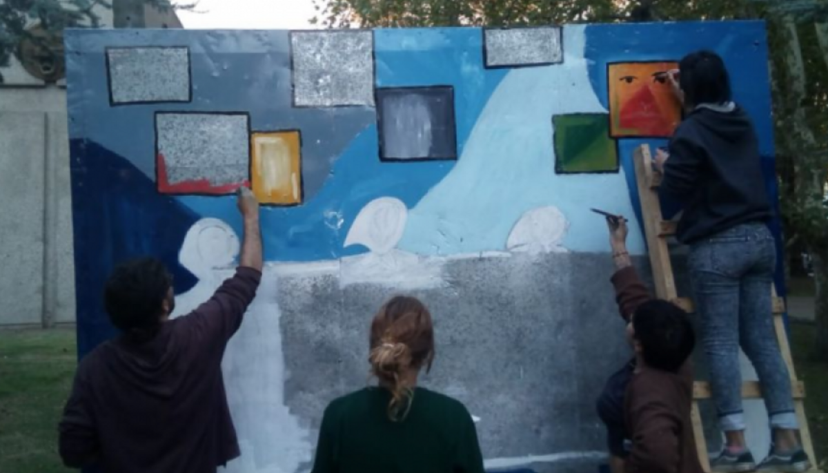Así quedó el mural finalizado por los jovenes que se hicieron presente en la plaza.