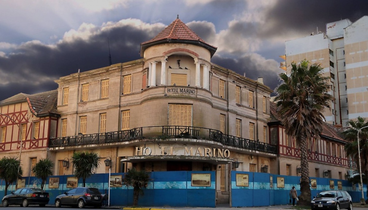 Allí fue que un primo marplatense que estaba viviendo en Sudáfrica, Esteban Azorin, desembarcó en el Hotel en 1994. Instaló una cafetería con salida a calle 4 donde estaba el comedor de niños y gestionó el edificio durante cuatro años. Grupos de música, conciertos, una parrilla dentro... «no le rendía como hotel». Fue en aquel momento cuando el Hotel Marino fue declarado Patrimonio Histórico Municipal, casi como un sello que marcaba su derrotero.