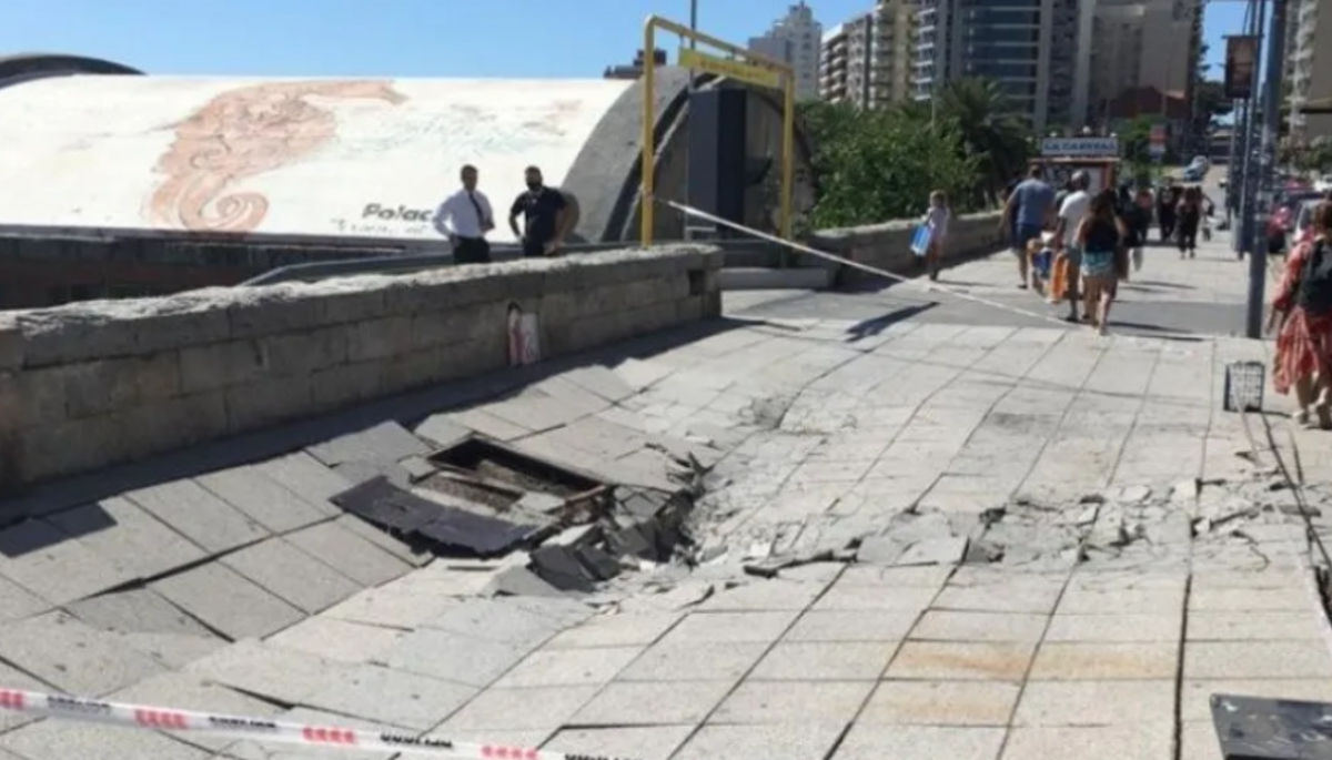 Según precisó el Ente Municipal de Servicios Urbanos (Emsur), la vereda del tramo ubicado en el Boulevard Marítimo y calle Las Heras, a 150 metros del Casino Central y frente a la pileta cubierta del Centro de Educación Física N°1, colapsó cuando uno de los vehículos de la empresa "9 de Julio", encargada de la limpieza del sector, cargaba agua en el lugar.